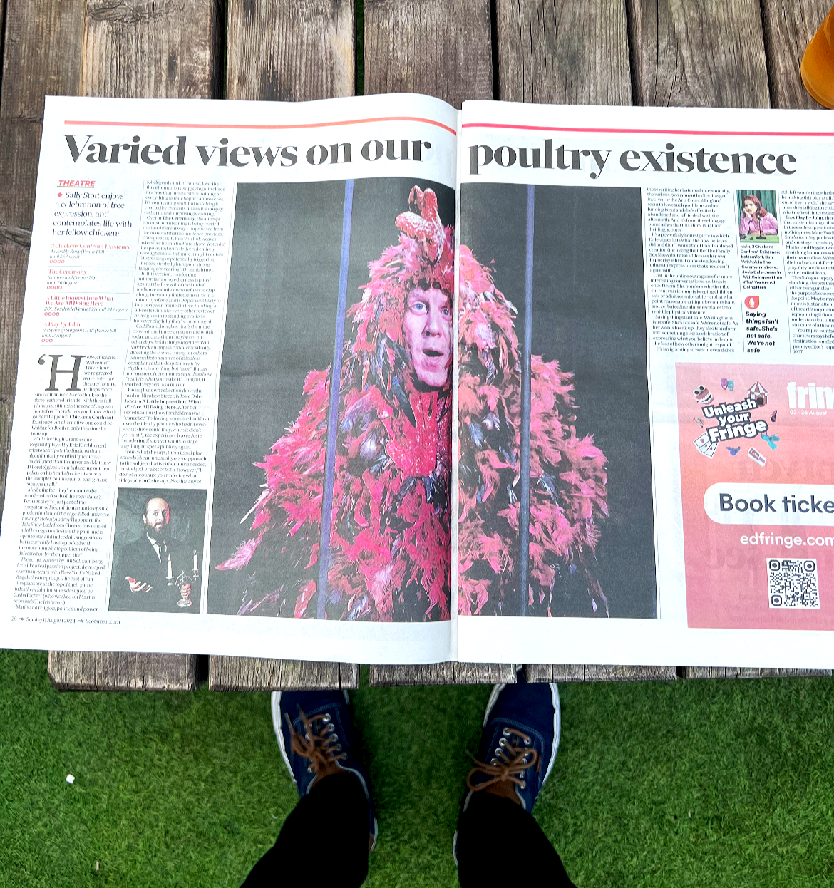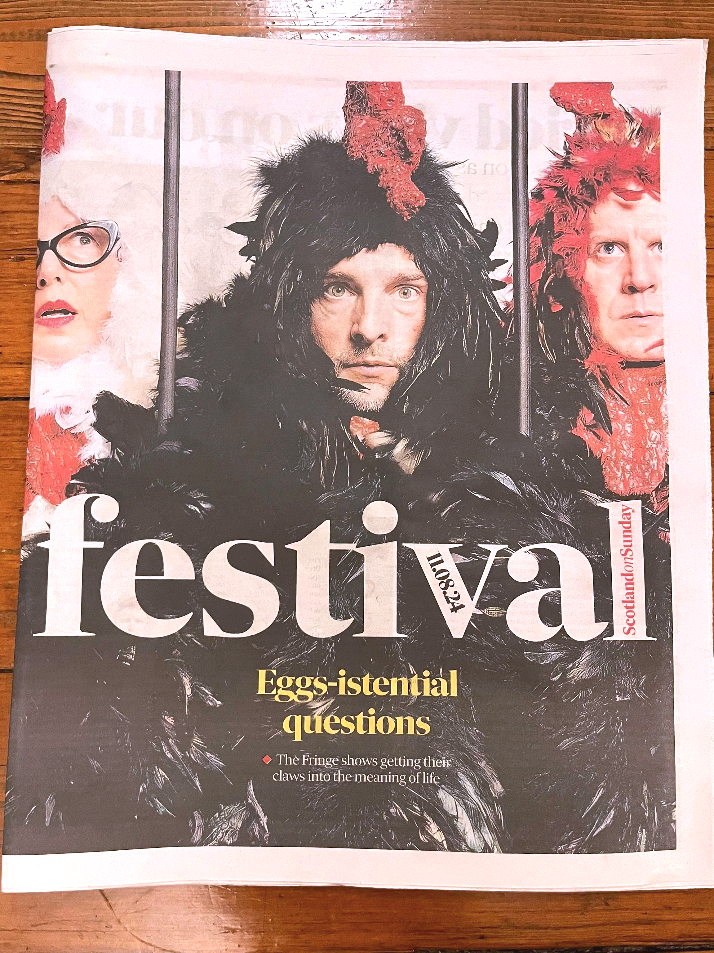 Following their critically acclaimed run at last year’s festival, Three Chickens Confront Existence returns with their eggs-traordinary show, promising to make audiences laugh and cry. This hilarious show offers a fresh perspective on humanity and our place in the universe. Think Waiting for Godot, but with chickens. Tragedy seamlessly morphs into comedy and back again as they explore mysticism, power struggles, class inequality, mythology and religion, all while delivering emotionally charged antics and plenty of surprises.